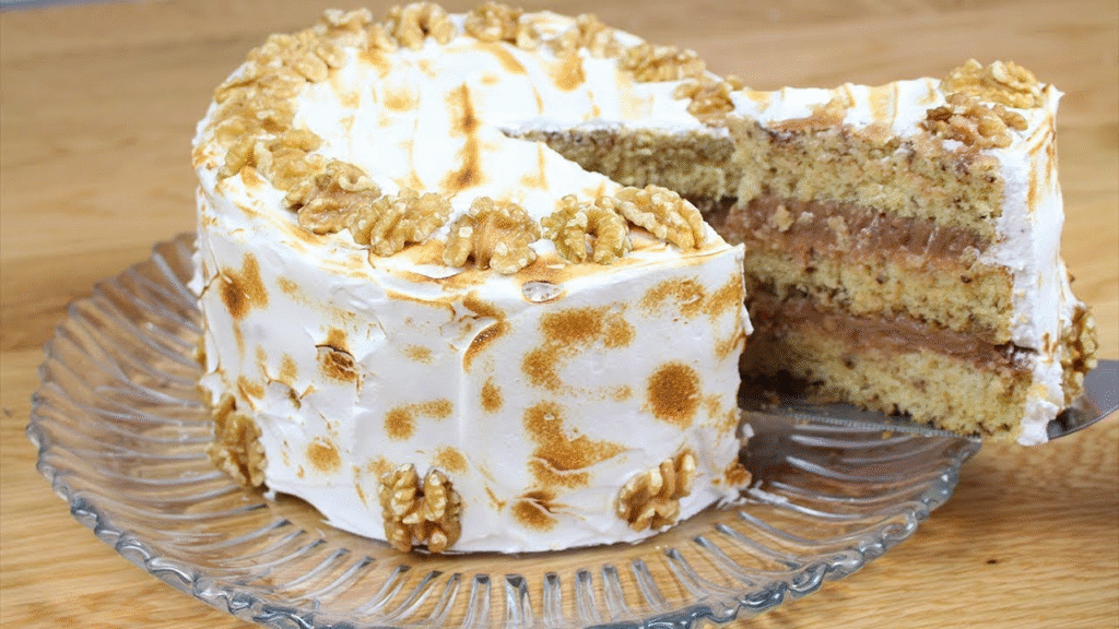 Entre os sabores que representam o Natal, as nozes ocupam lugar especial. Esse bolo é ideal para quem gosta de sobremesas com aroma amadeirado e textura encorpada. A massa leva farinha, açúcar, ovos, manteiga e nozes trituradas, que adicionam crocância e profundidade ao sabor. Para o recheio, um creme simples de leite condensado cozido ou um creme amanteigado com nozes picadas funciona muito bem. O acabamento pode ser feito com chantilly ou glacê simples, criando um visual elegante e refinado. Servido gelado, o bolo de nozes se torna uma sobremesa perfeita para equilibrar a forte presença de pratos salgados das ceias, trazendo leveza e um toque sofisticado ao cardápio.