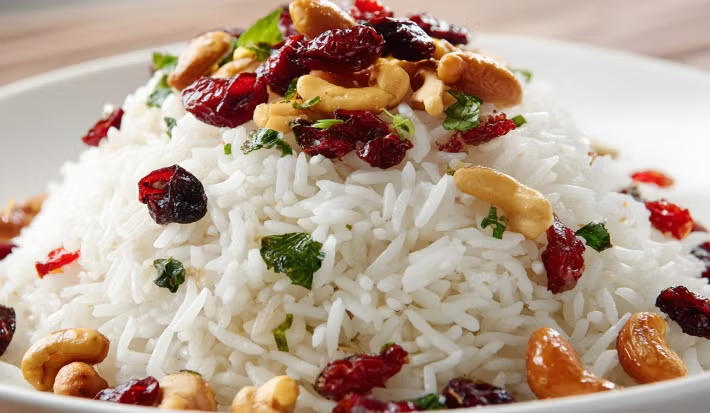 O arroz deixa de ser coadjuvante e ganha destaque quando preparado com castanhas, amêndoas e uvas-passas. Além de simples, é uma receita versátil que combina com diferentes pratos principais.