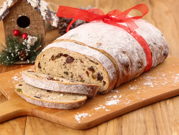 O Stollen é um pão doce denso, recheado com frutas secas, castanhas e especiarias, coberto com açúcar de confeiteiro. Sua forma alongada e branca representa, segundo a tradição, o menino Jesus envolto em panos.