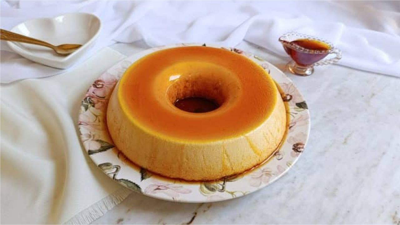 Com café: Dissolva 1 colher de chá de café solúvel no leite morno antes de misturar com os ovos. Não muda a textura, só o sabor — fica com um amargor discreto que equilibra o doce da calda.